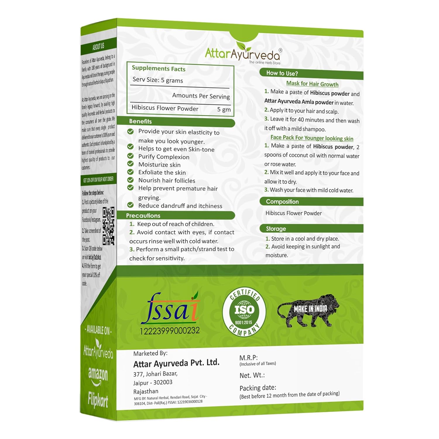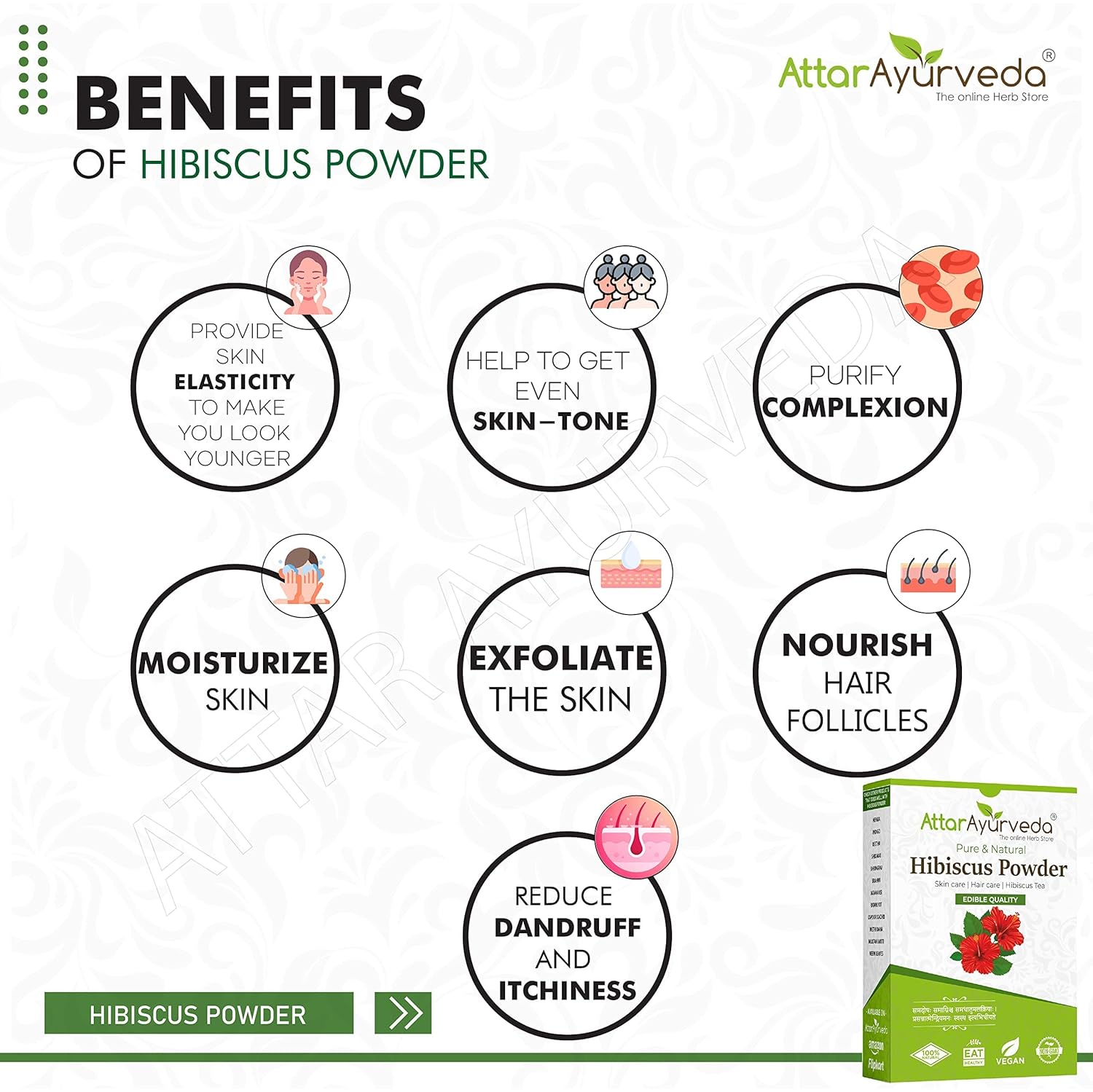 Attar Ayurveda Hibiscus powder for hair growth (100 Grams) | Ideal for Hair pack, Face pack, Eating, and Hibiscus tea | Gudhal Ka Phool Powder | 100% Pure and Natural, No Preservatives