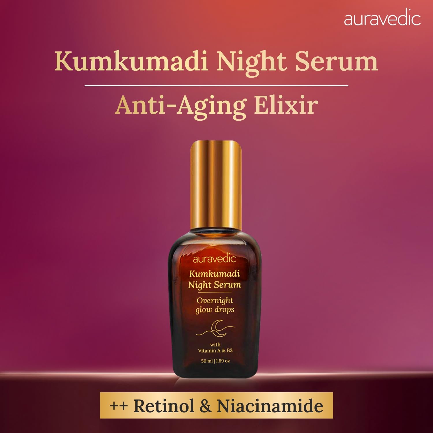 - Anti - Aging Night Serum with Retinol and Niacinamide : This Kumkumadi Night Serum combines the power of Ayurvedic botanicals and advanced dermatological science to support the skin’s natural repair cycle.