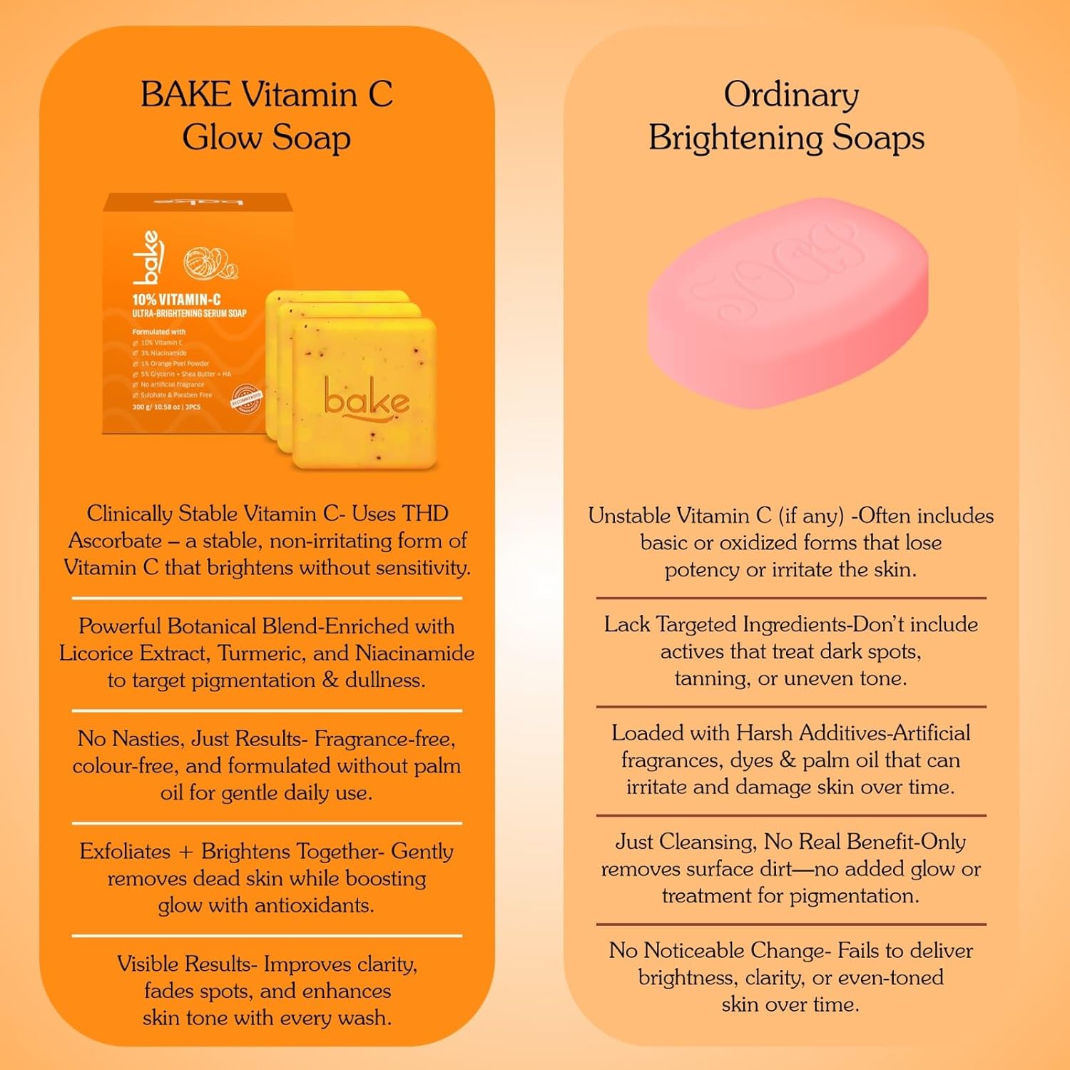 Bake 10% Vitamin C Ultra Brightening Serum Soap, 3% Niacinamide & Turmeric, 300 gm