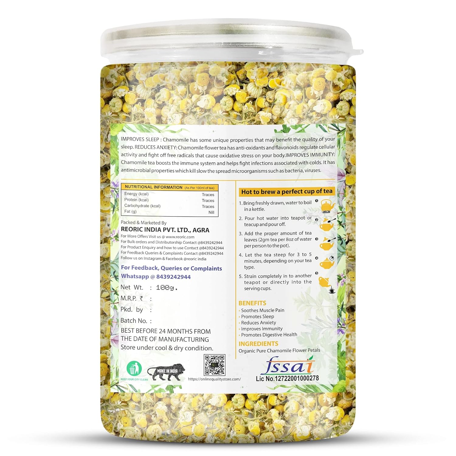 - Package Contain: 100g Chamomile Flower Herbal Tea.|| Shelf Life: It has a shelf life of 24 month.