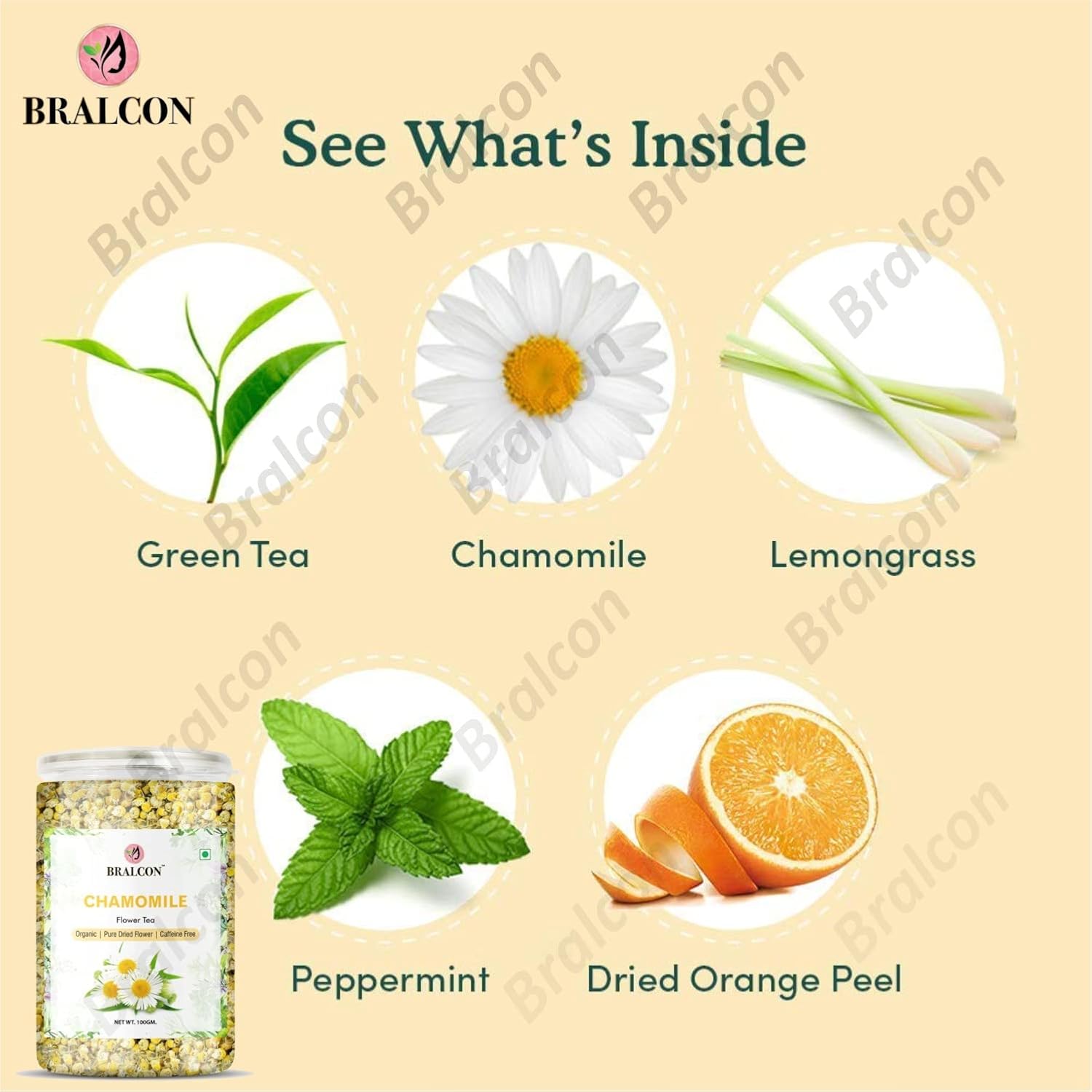 - Bralcon Offers 100 % Organic Fresh & Natural, Pure Dried Chemomile Flower Tea. It is good for Improves Sleep, Reduce Anxiety, Improves Immunity, Promotes Digestive Health.