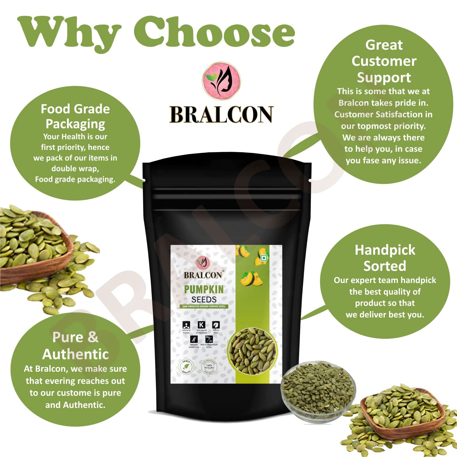 BRALCON Organic Pumpkin Seeds - 100g | Raw Unroasted Pumpkin Seeds for Eating | Protein and Fiber Rich Superfood | Rich in Omega-3 fatty acids