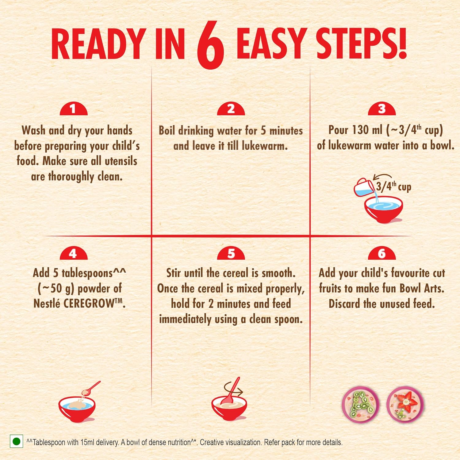 • A bowl of dense nutrition with goodness of wheat, rice and oats, along with milk and fruits like apple, orange and pomegranate