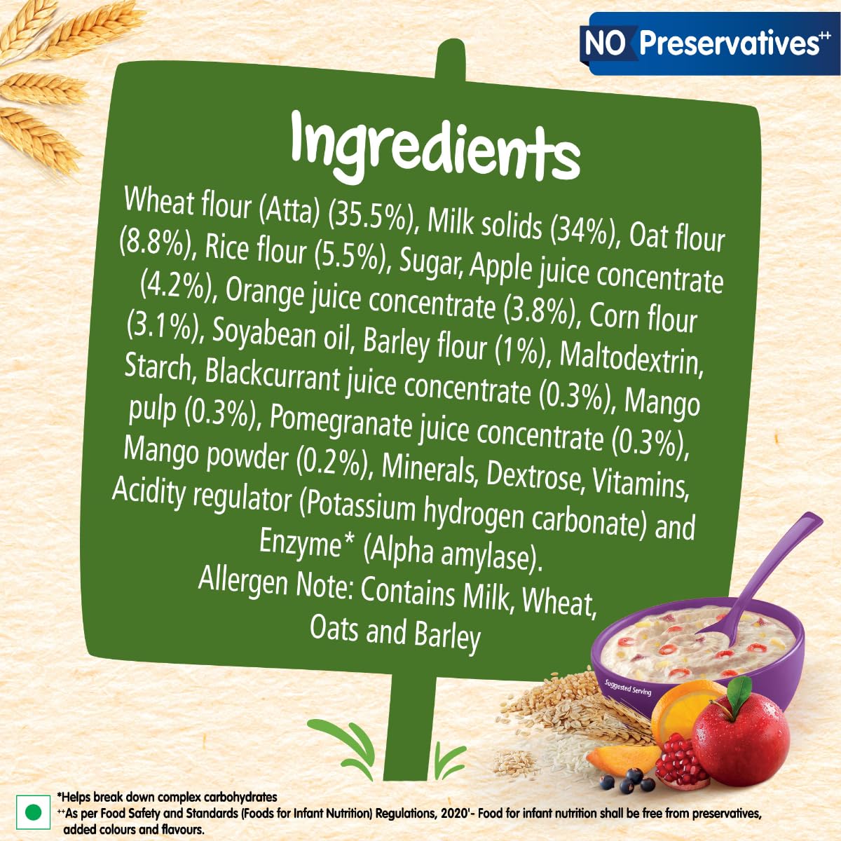 - INSTANT BABY FOOD CEREAL: This 5 Grains & Fruits baby food is packed with the goodness of cereal, milk & fruits