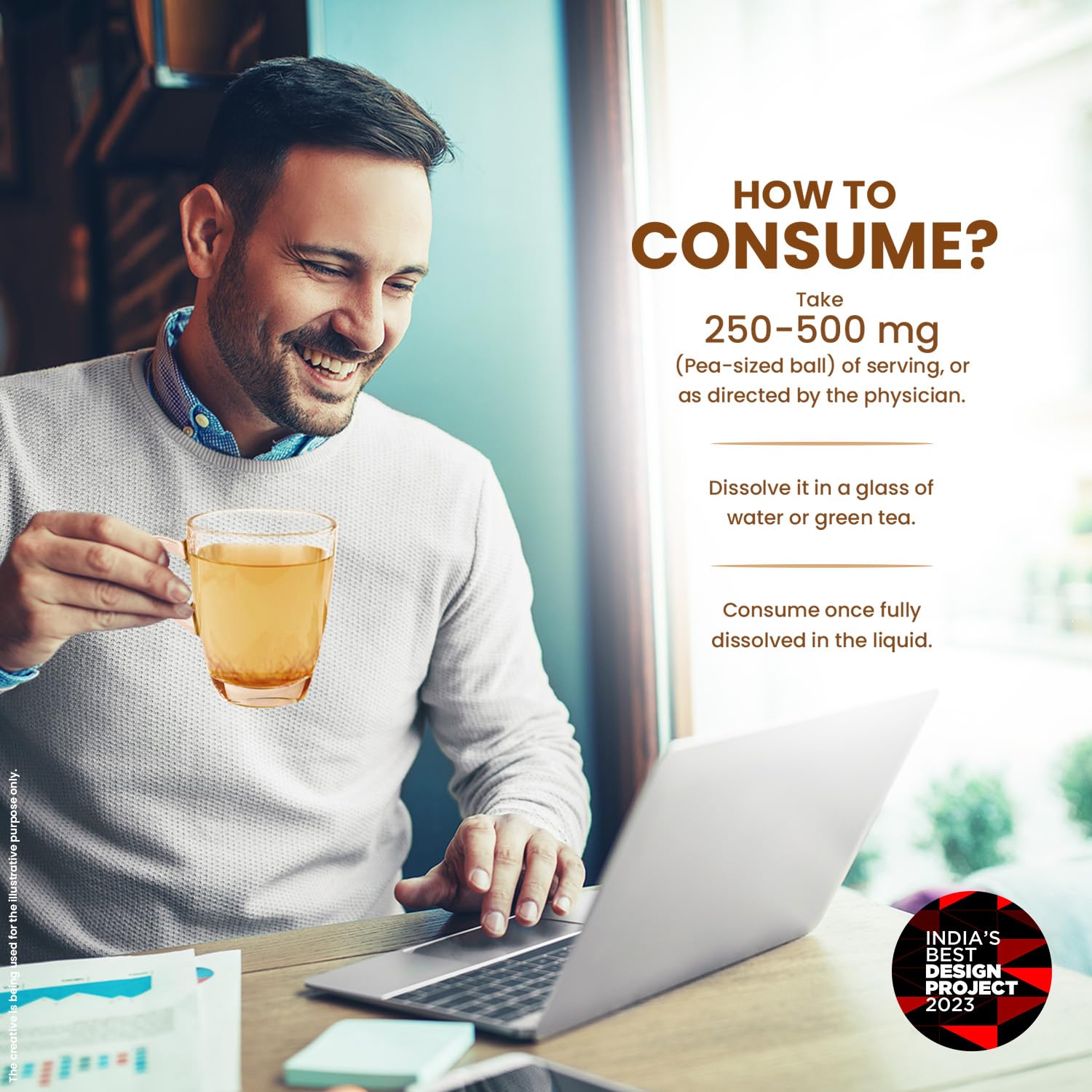 - EASY TO CONSUME- It is easily consumed by mixing a pea sized ball (250 mg- 500 mg) in a glass of lukewarm water