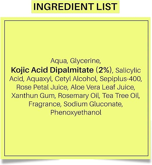 - FADES DARK SPOTS: The skin-lightening properties of Kojic Acid work wonderfully when applied to dark spots and pigmentation, making them disappear for bright, even complexion.
