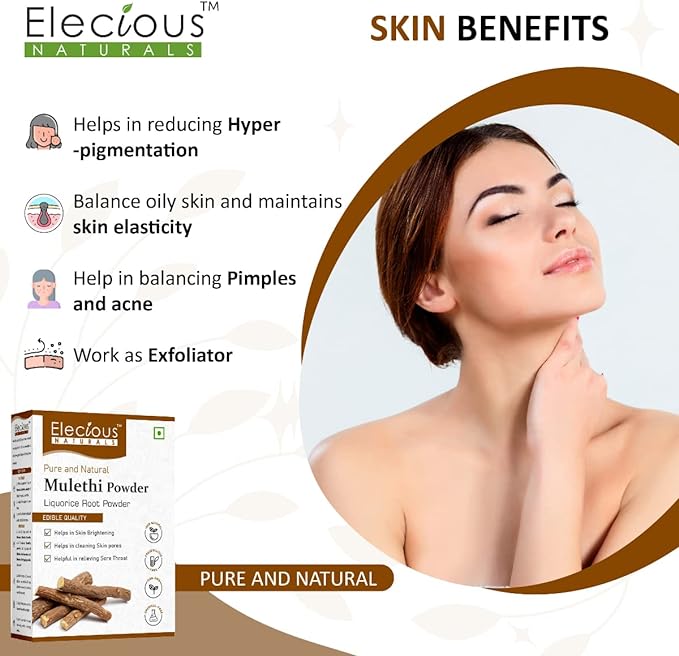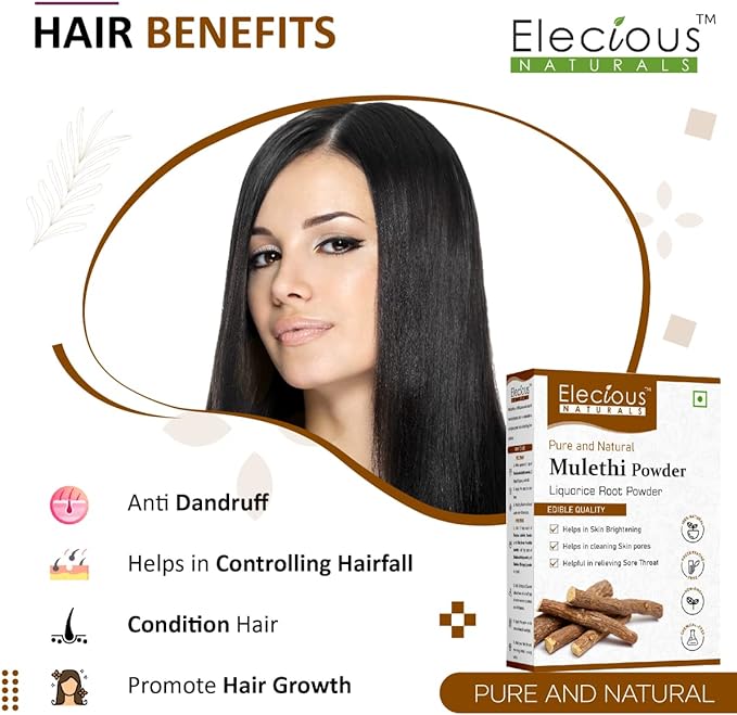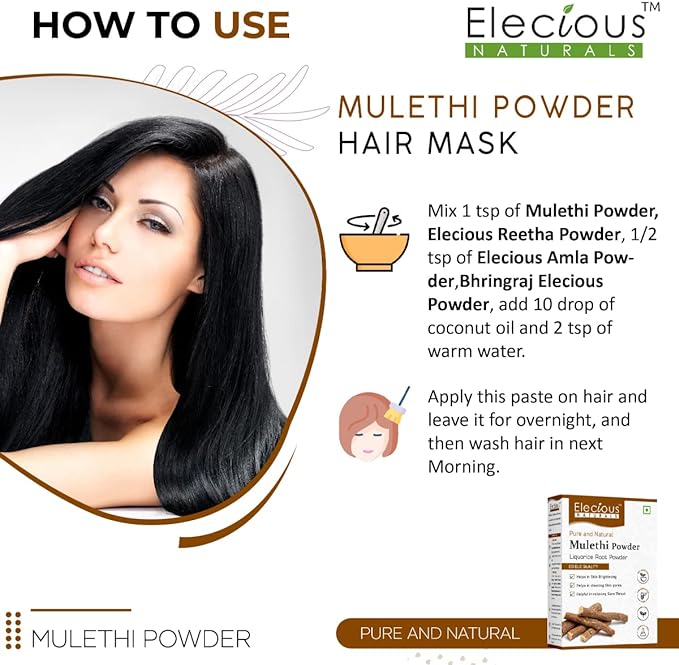 - TRIPLE FILTERED MICROFINE POWDER: Elecious mulethi powder undergoes triple filteration process to achieve very fine particles which makes it super beneficial for preparing face and hair packs.