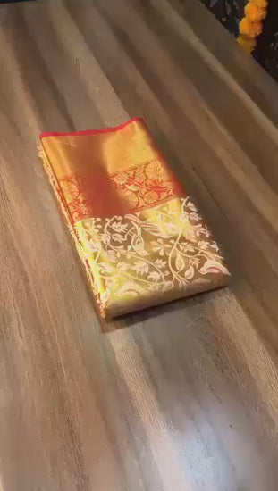 Pure Kanjivaram Silk With Mina Weaving & Contrast Border & Contrast Gold Zari Rich Weaving Pallu