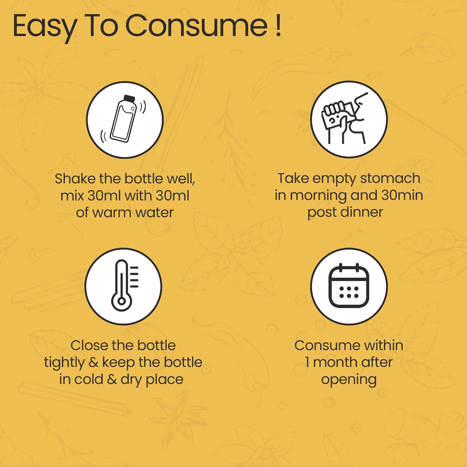 - Serving Recommendation: Shake Well Before Use, Mix 30 ml pf Juice with 30ml of warm water, Take empty stomach in the morning and 30 min post dinner | All-Natural Ingredients: Free from artificial additives & preservatives