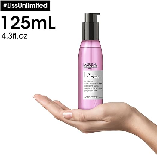 Get protection from frizzy hair and fly-aways. With a formula enriched with Evening Primrose Oils the Liss Unlimited shine perfecting blow-dry oil works to give the hair a sleek and softened finish. This oil is full of Omega-6, a fatty acid indispensable for healthy hair. The penetrating oil enables the facilitation of smoother hair, allowing for it to be stronger and easier to brush and blow-dry. The replenishing formula brings shine and manageability to your hair, leaving it feeling smoother and ready for the perfect blow-drying routine. Contains smoothing agents to provide a long-lasting, anti-humidity shield which controls your hair and keeps it frizz-free. The light, water-soluble formula, seals the hair giving it a fabulous shine and controlled smoothness. Apply to damp or dry hair. Do not rinse. Optimum and long-lasting results with continued use of the full Liss Unlimited routine, shampoo & mask, to smooth your hair.