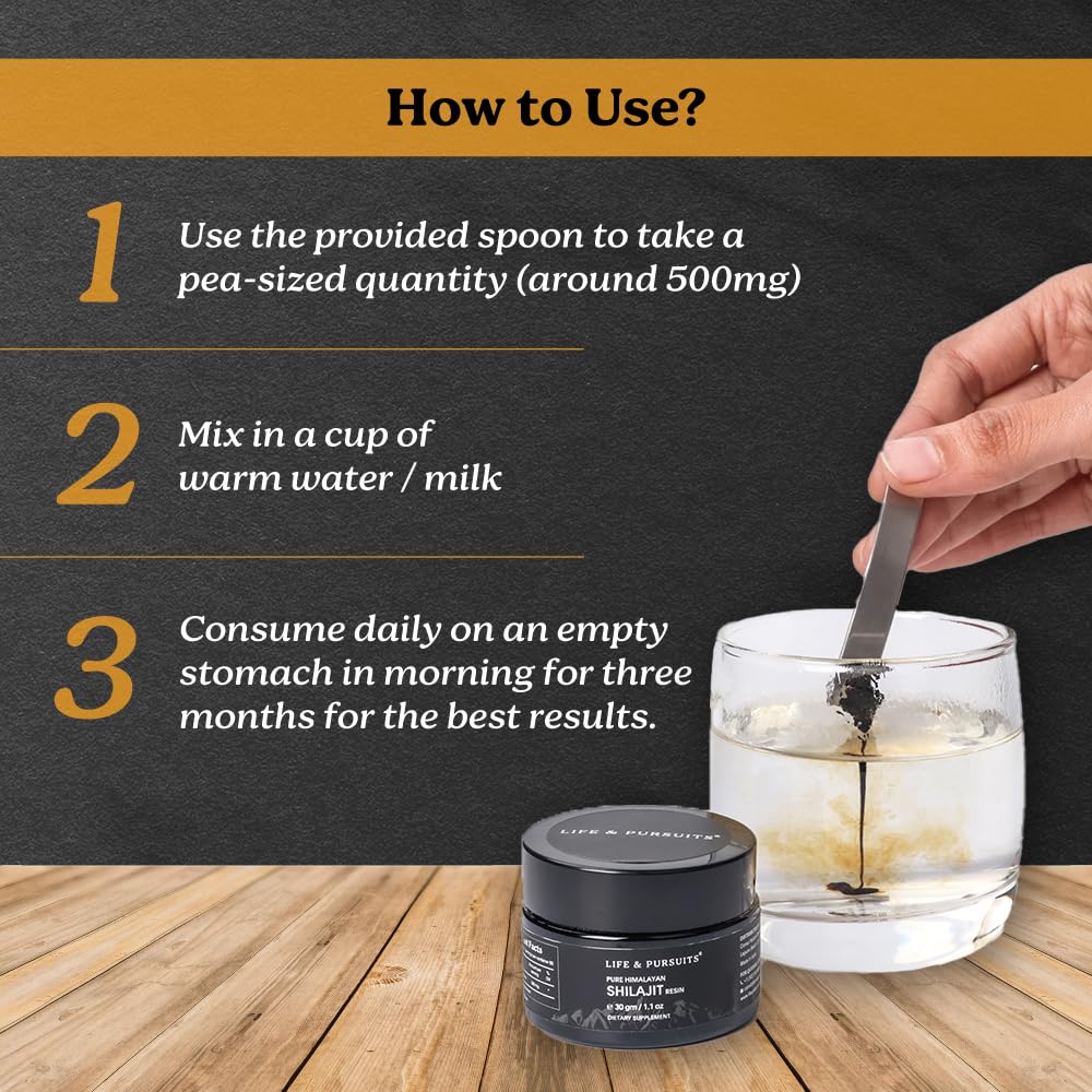 Life & Pursuits 100% Pure Real India Himalayan Shilajit Resin, 30 gm 500mg