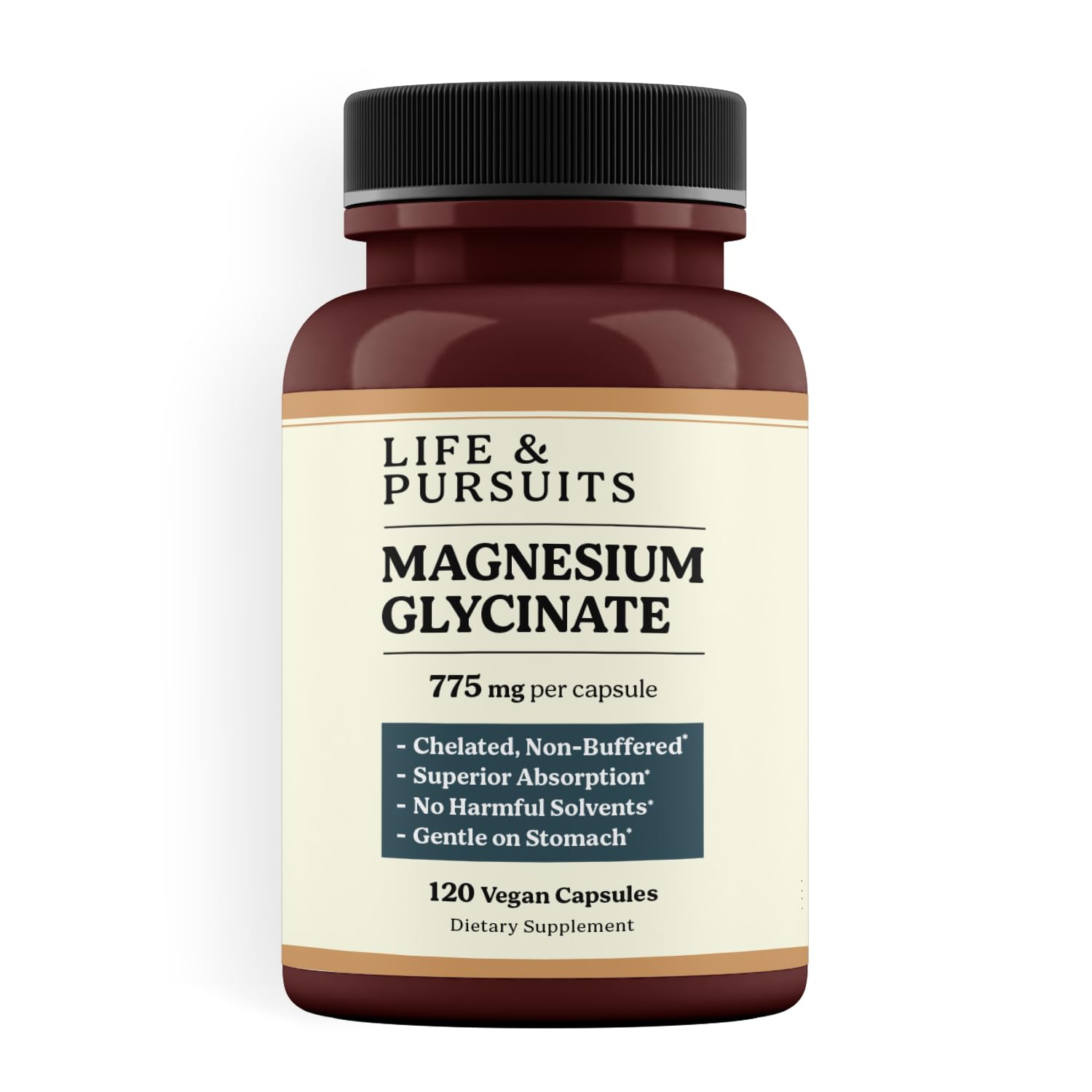 Life & Pursuits Pure Magnesium Glycinate 775 mg – 120 Vegan Capsules | 100 mg Magnesium per Capsule
