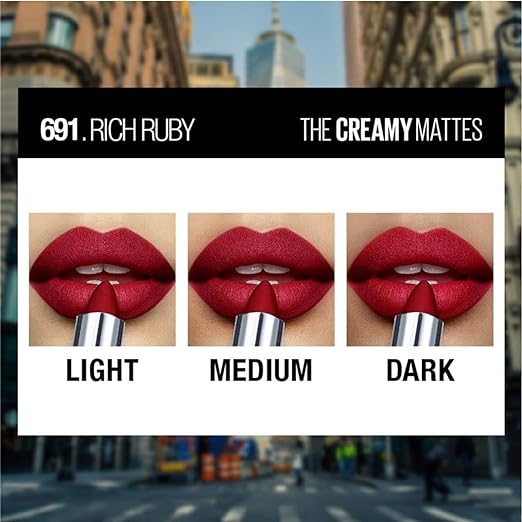 - Matte Finish Maybelline Lipstick: This velvety, hydrating matte lipstick goes on in one swipe, delivering bold, intense color that lasts; Formulated with honey nectar for a sensuous finish