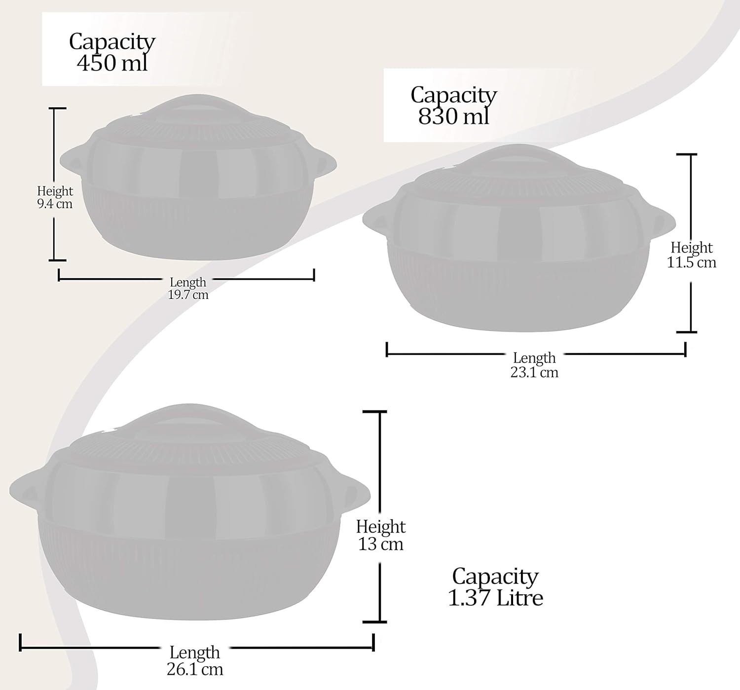 Milton Fiesta Insulated Casserole (Brown, Set Of 3, Inner Stainless Steel), 450 ml