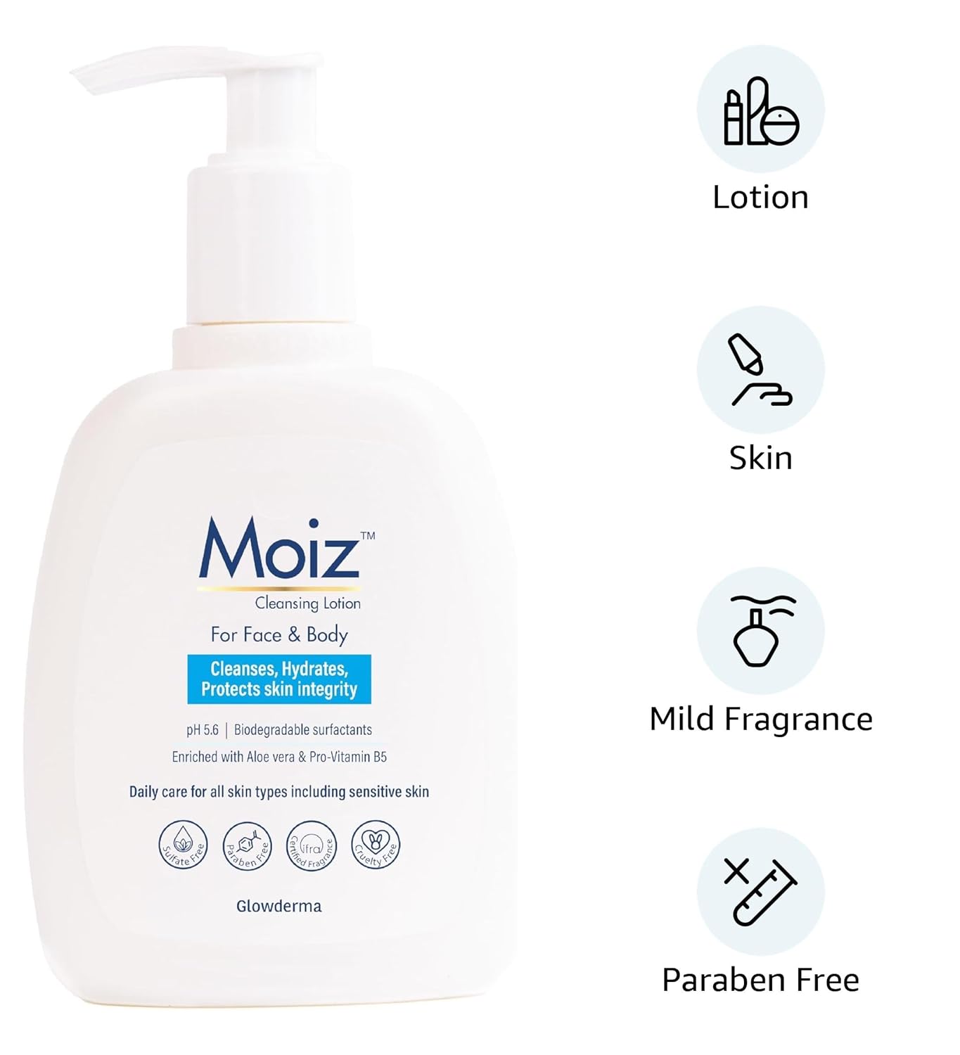 - Moiz Cleansing Lotion is expertly formulated to help unclog pores and balance natural sebum production for a more vibrant, and radiant skin.