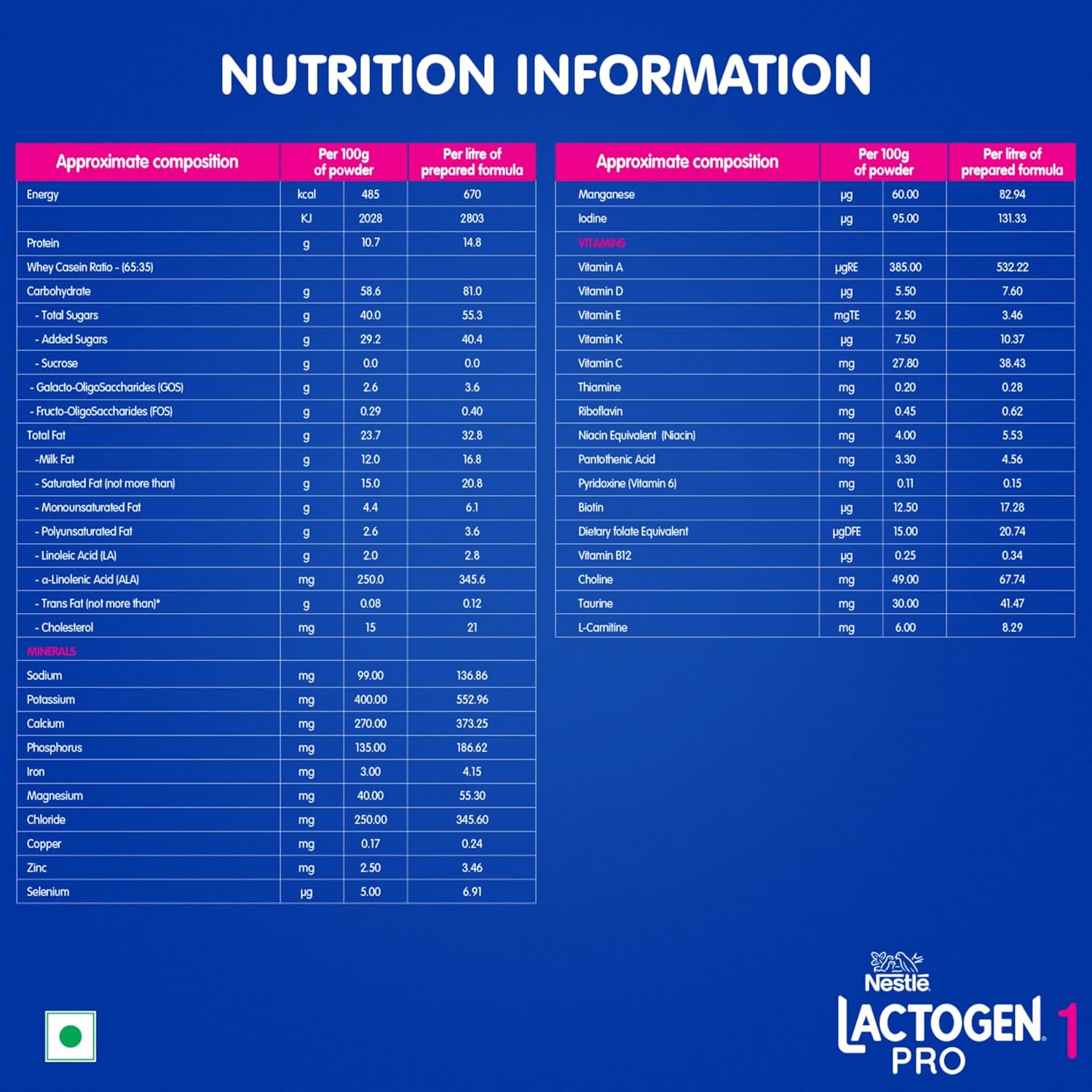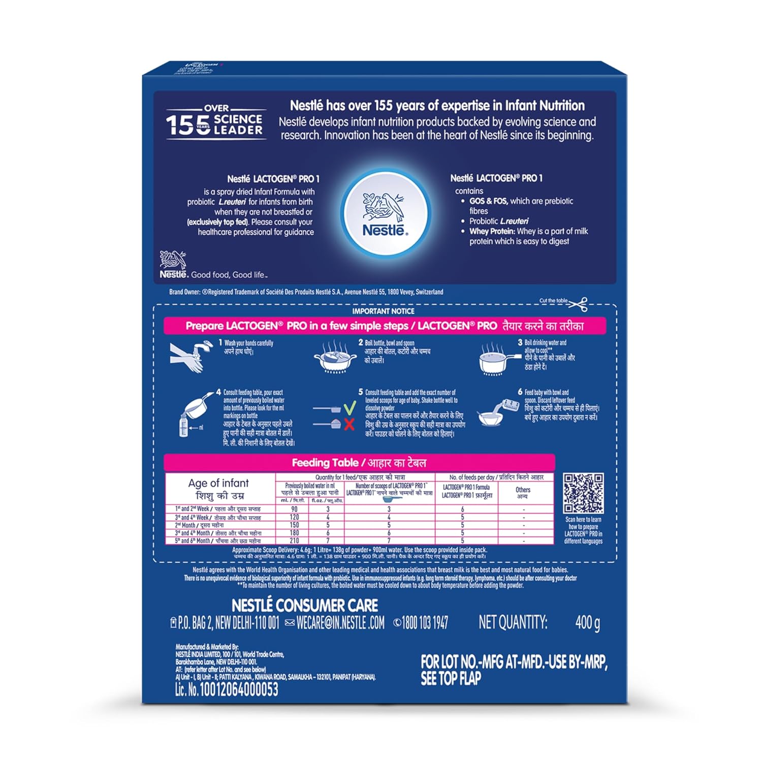 Nestle Lactogen Pro 1 Powder, Infant Formula Up To 6 Months With Probiotic And Prebiotics, Bag-In-Box Pack, 400 gm