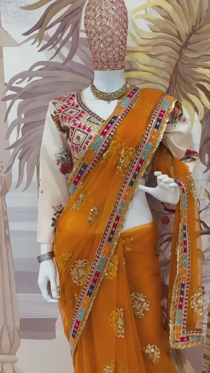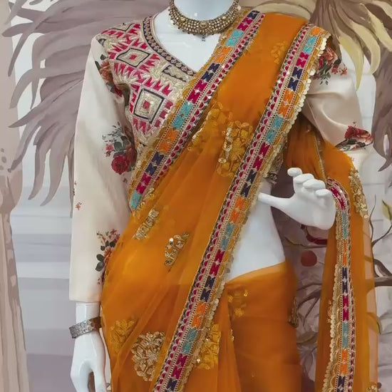 WE 👀ARE LAUNCHING NEW SUPERHIT DESIGN ON NET FABRIC WITH HEAVY EMBROIDERY & FANCY LACE WORK SAREE WITH STITCH BLOUSE🥻