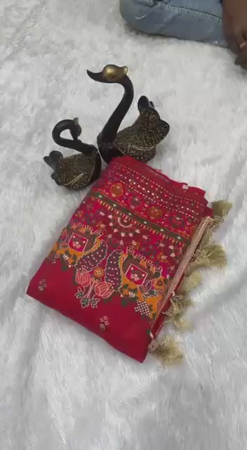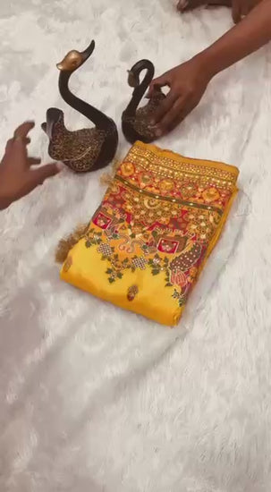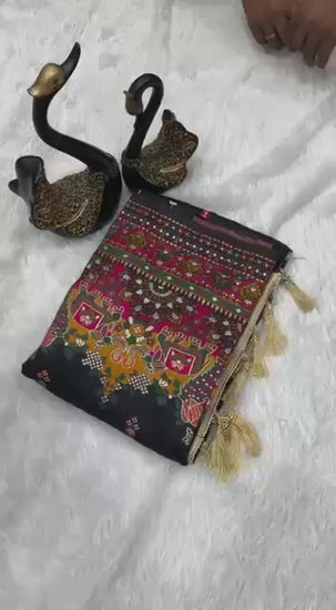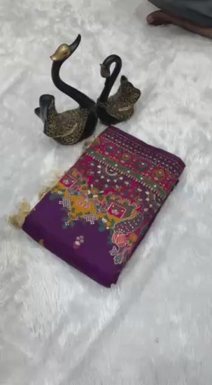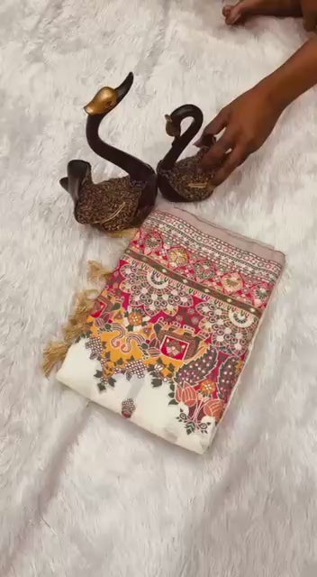 Pure n Soft Rajwadi Pashmina Silk Weaving Saree With Kashmiri Thread Wooven Pallu Having Fancy Tassels With Heavy Rajwadi N Zari Weaving Border With Running Butti Blouse