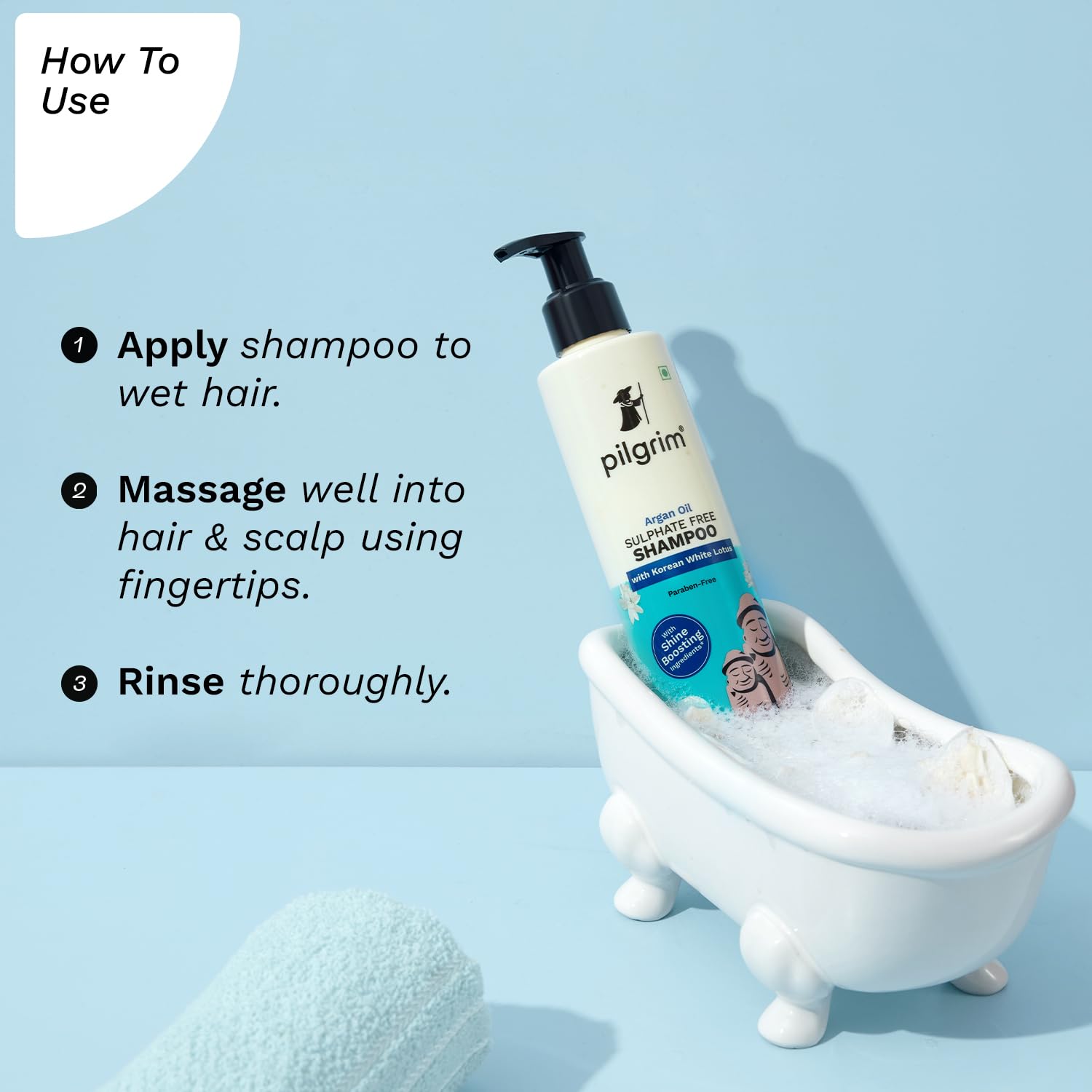 - NATURAL INGREDIENTS, NO TOXINS: Crafted following strict guidelines of THE PILGRIM CODE, this mild shampoo is FDA approved, Contains No Paraben, No Sulphate, No Mineral Oils as well as other harsh chemicals and is Cruelty free. HOW TO USE: Apply generously on wet hair. Massage well into hair and scalp using fingertips. Rinse thoroughly. For best results, use daily or on alternate days!