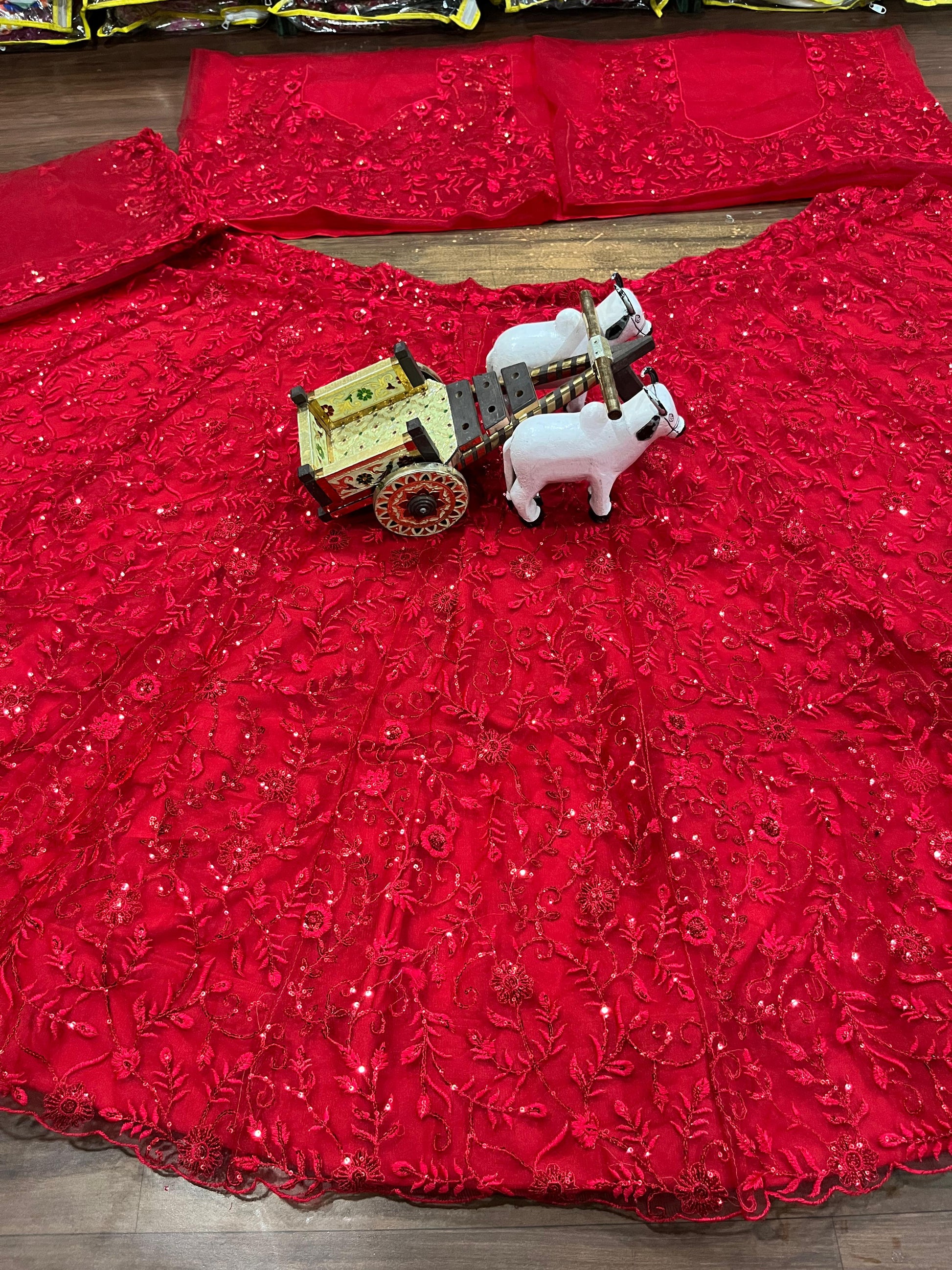 Launching 4 meter flared Soft Butterfly Net Sequins Embroidered Work Lehenga, Exceptional Quality with Can-Can and Canvas Layers, A Perfect Fusion of Glamour and Comfort