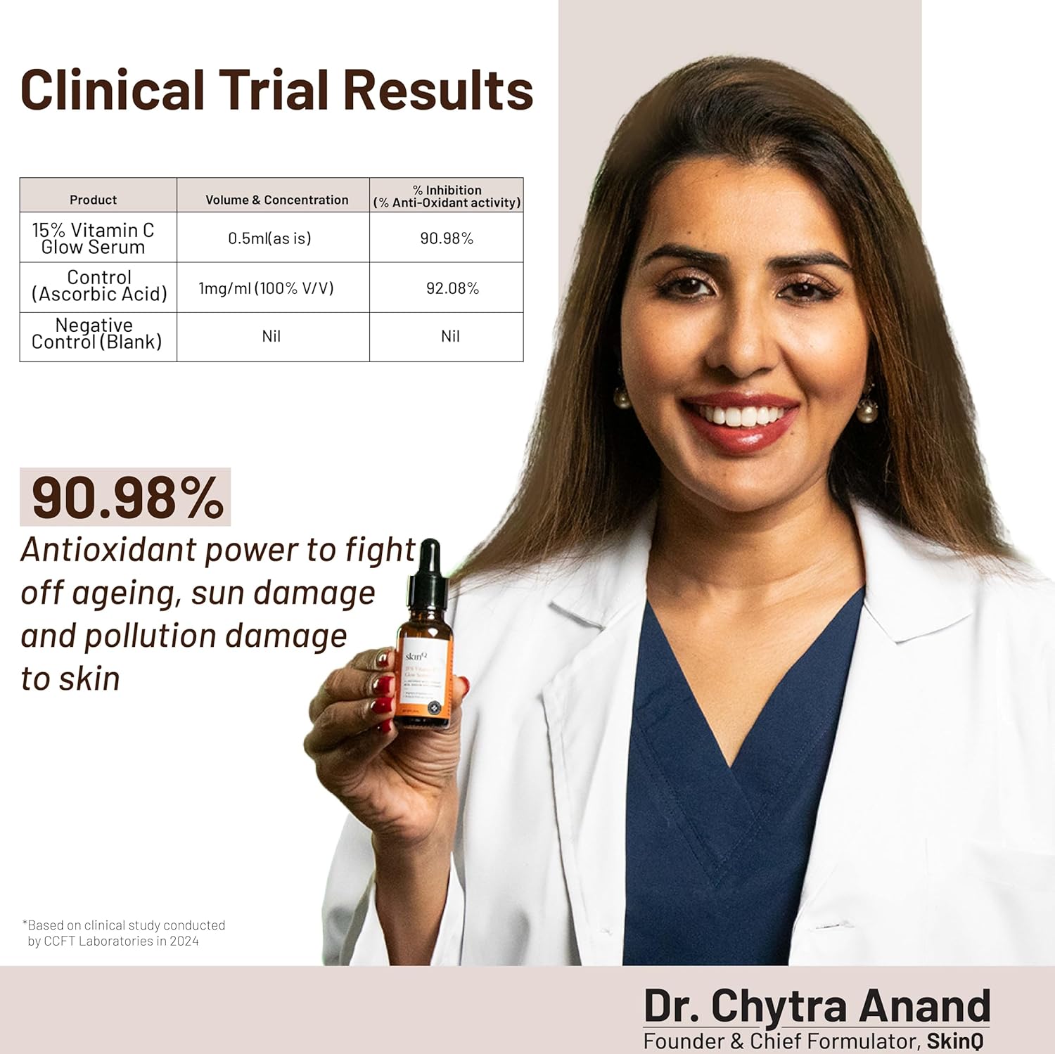 SkinQ 15% Vit C Face Serum for Glowing & Brightening Skin, Helps reduce Pigmentation, Patches, Dark Spots & Tan, 20 ml