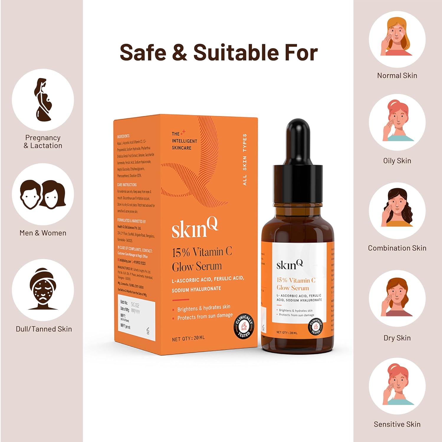 - SKIN CARE SOLUTION: Vitamin C Face Serum is a specially formulated Serum for Indian skin types & Dermatologist approved. SkinQ Vit C Serum caters to the unique needs of your skin & helps delivering remarkable results. Suitable for both women and men, having a addition of this Serum to your skincare regimen will help you give visible results.