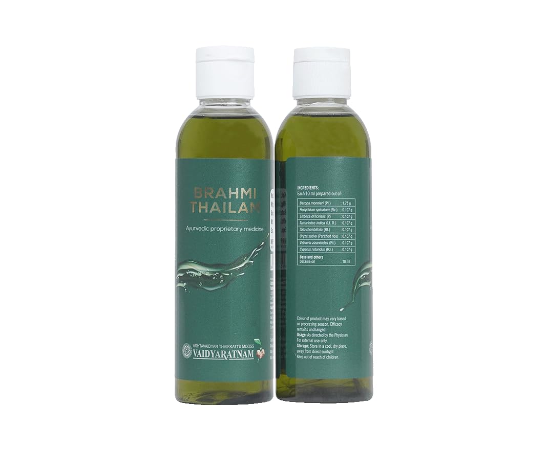 VAIDYARATNAM Brahmi Thailam, Ayurvedic Hair Oil for Stress Relief, 200 ml