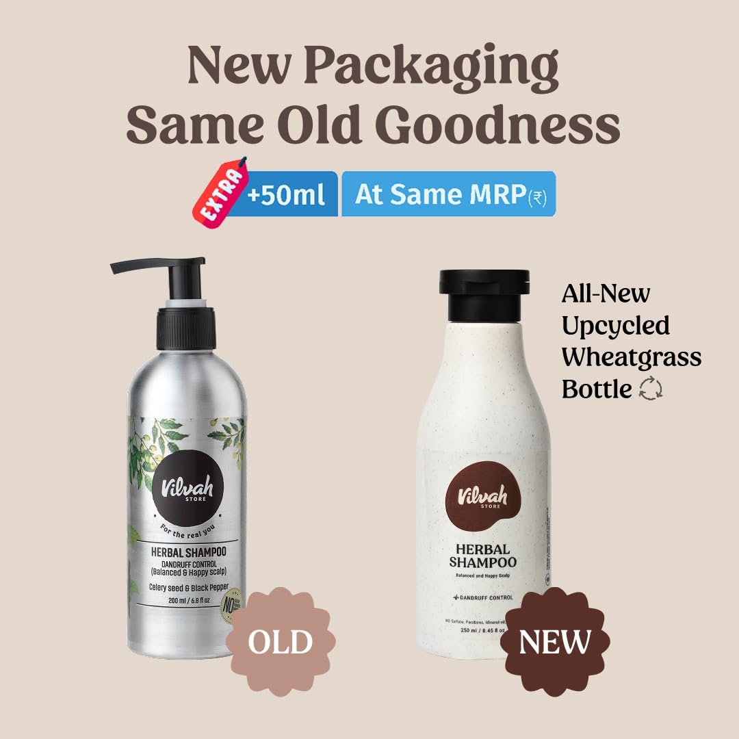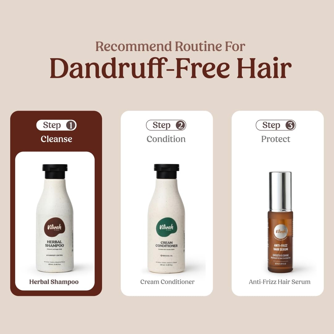 Vilvah Store Herbal Shampoo for Dandruff Control, Anti Dandruff Shampoo, Relieves from dandruff related itching, Soothes Scalp & Nourishes Hair, SLS & Paraben Free, For Men and Women, 250ml