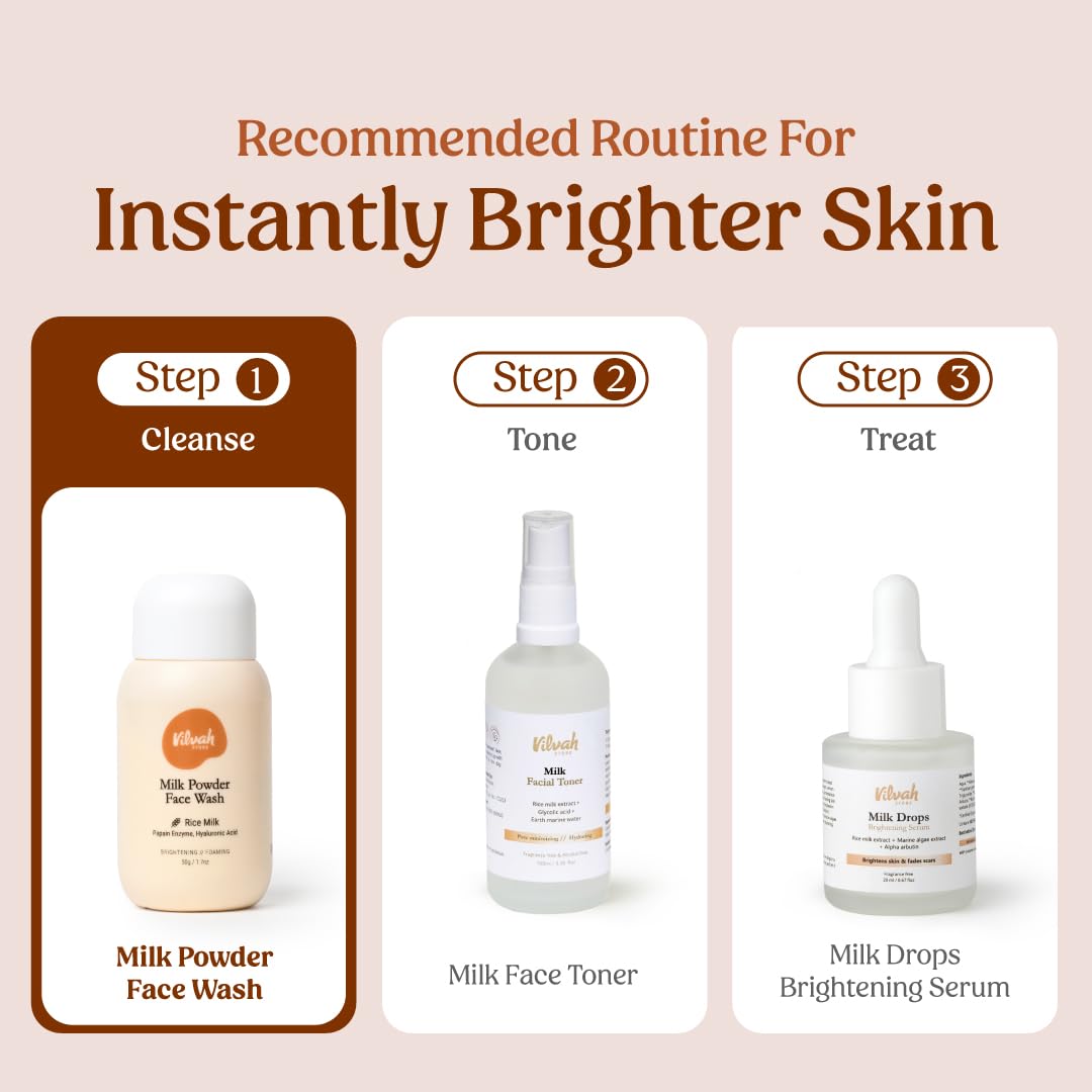 Vilvah Store Milk Powder Face Wash | Gentle Exfoliation & Deep Cleansing | Enriched with Rice Milk, Rice Silk,Rice Powder | For Normal to Oily & Acne Prone Skin | Unscented | Men & Women | 50G